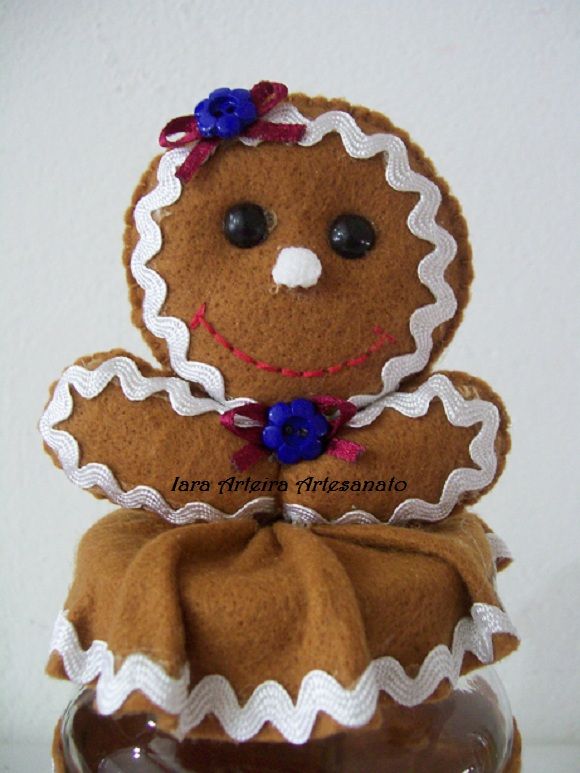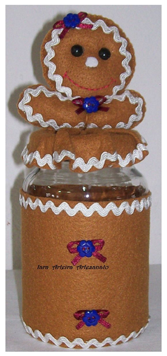 Vidro com capacidade para 500ml, revestido com a "Ginger - the girl" (biscoito do Shrek) em feltro.
